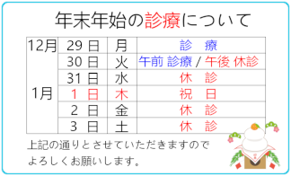 - 2025/12/ 1 【年末年始休診のお知らせ】